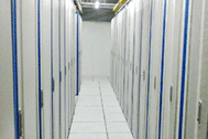 UPS系统,一期共安装四台索科曼(800KVA)系列UPS主机,单台功率为200KVA,总有功率为640KVA。二用二备并机的情况下, 托管满3500台服务器,两路市电同时掉电,油机启动前电池组能工作一小时。二期总功率将更大。单台功率为800KVA。