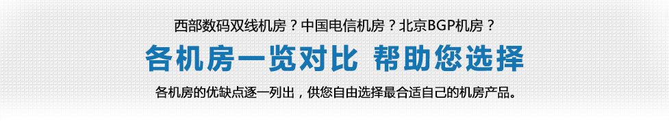 | 如果仍把握不准,不知道如何选择哪个机房,请将您的需求信息(所在地区、上网方式、网站简要情况)发给在线客服,我们将为您人工推荐合适的机房! | |||||